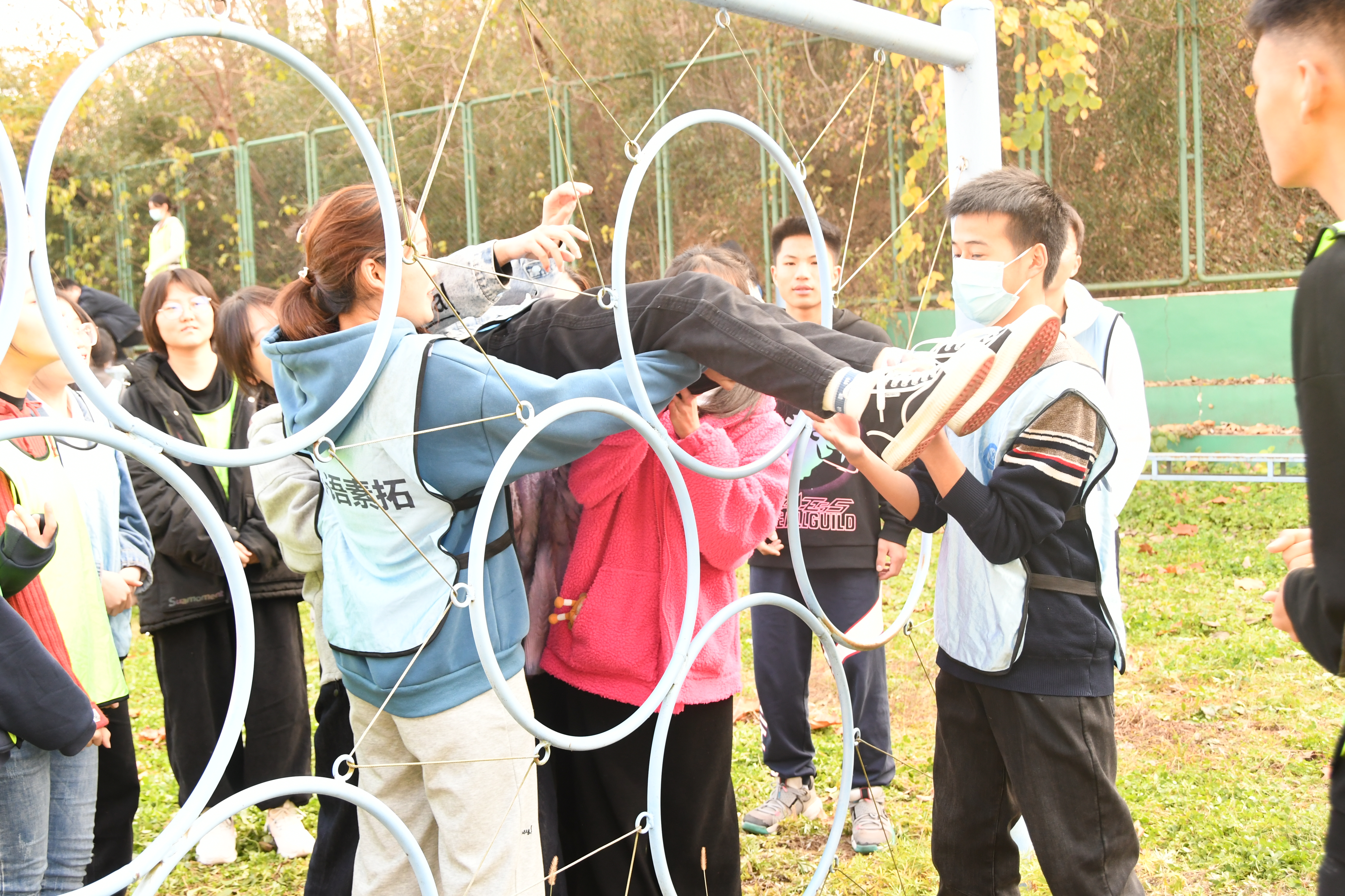 下午两点半,同学们在心语拓展园门口集合完毕。在工作人员的带领下,陆续进入园内,而后由老师分为三组,在老师的认真讲解下,同学们了解到基本规则。本次拓展训练共六个项目。活动中,同学们以小组为单位训练,起初相互比较陌生,在紧张刺激的游戏之后,气氛逐渐活跃。最后,同学们在老师的带领下进行了最后的活动,于此,本次心理素质拓展训练活动圆满结束。