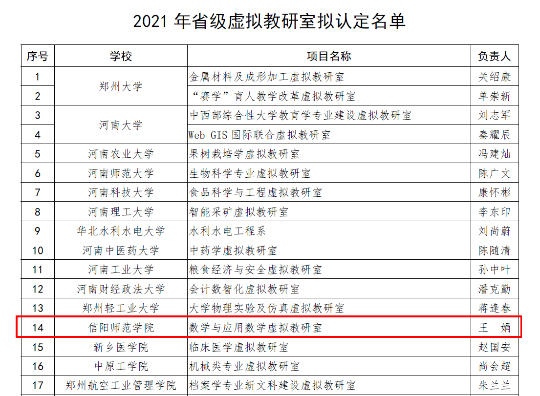 近日,2021年度省级虚拟教研室建设试点项目评审结果公布,公司数学与应用数学虚拟教研室获批首批试点建设项目。