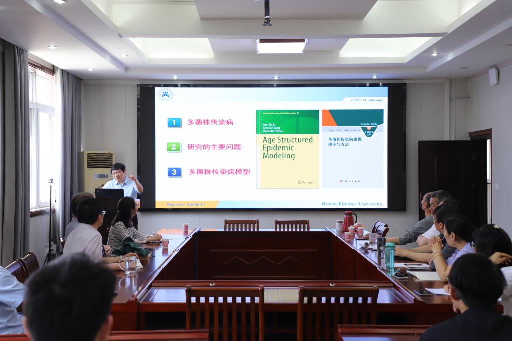 5月14日上午,应pa视讯集团官网邀请,河南财政金融公司李学志教授在数学楼315会议室为公司师生做了题为“多菌株传染病动力学建模与研究”的学术报告,报告会由pa视讯集团官网王霞教授主持,经理蔡礼明教授、副经理韩英波教授及部分教师和研究生聆听了报告。