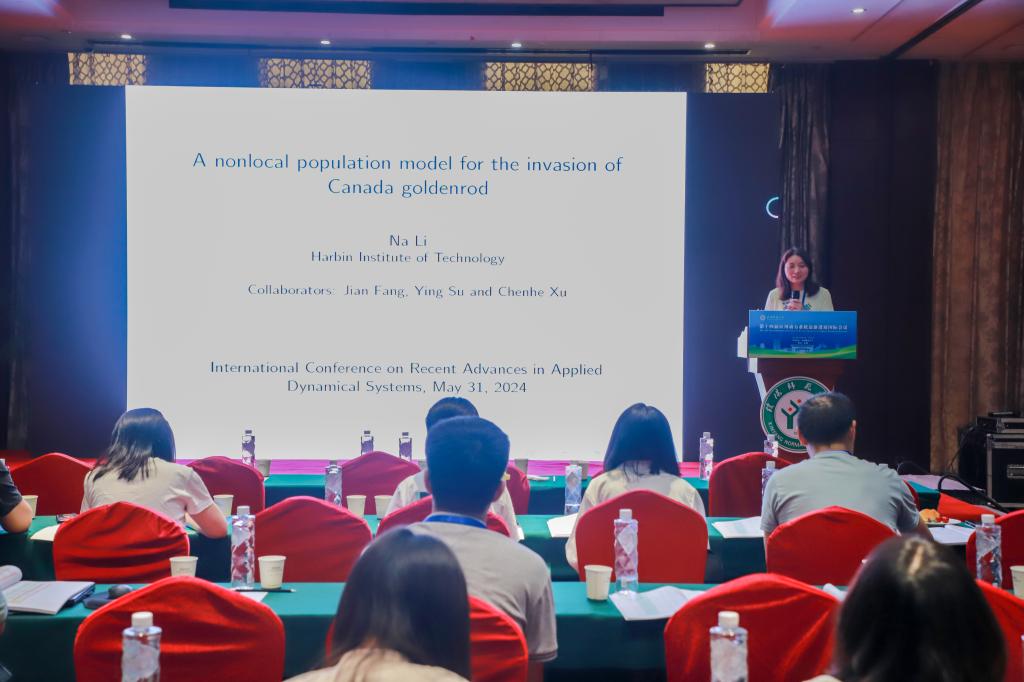 哈尔滨工业大学的李娜,做了题目为《A nonlocal population model for the invasion of Canada goldenrod》的报告。
