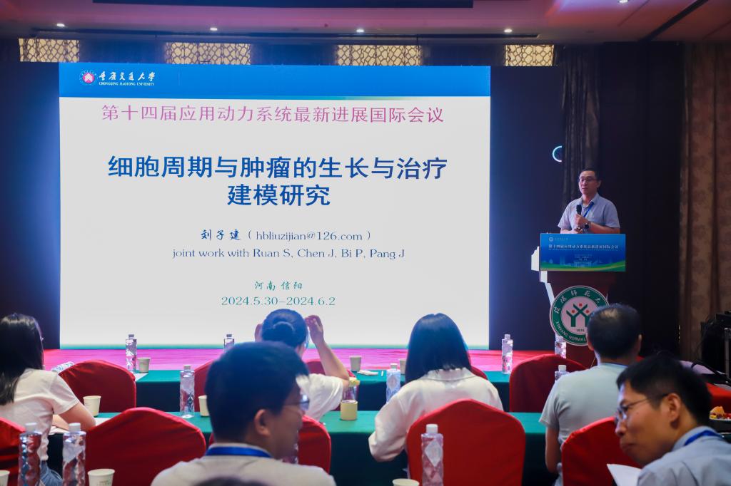 重庆交通大学的刘子建,做了题目为《细胞周期与肿瘤的生长与治疗建模研究》的报告。