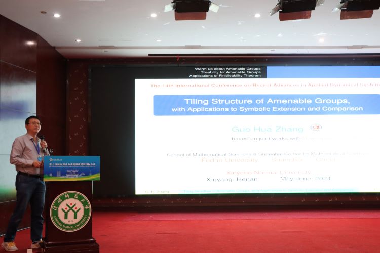 复旦大学的张国华,做了题目为《Tiling Structure of Amenable Groups with Applications to Symbolic Extension and Comparison》的报告。