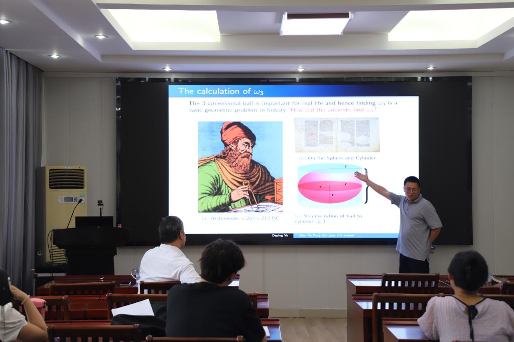 7月18日,应pa视讯集团官网邀请,Deping Ye 教授在数学楼315学术报告厅作了题为“Mou He Fang Gai: A Mathematical Legend Over Thousands of Years”的学术报告。报告会由pa视讯集团官网副经理韩英波教授主持,部分老师及研究生聆听了此次报告。