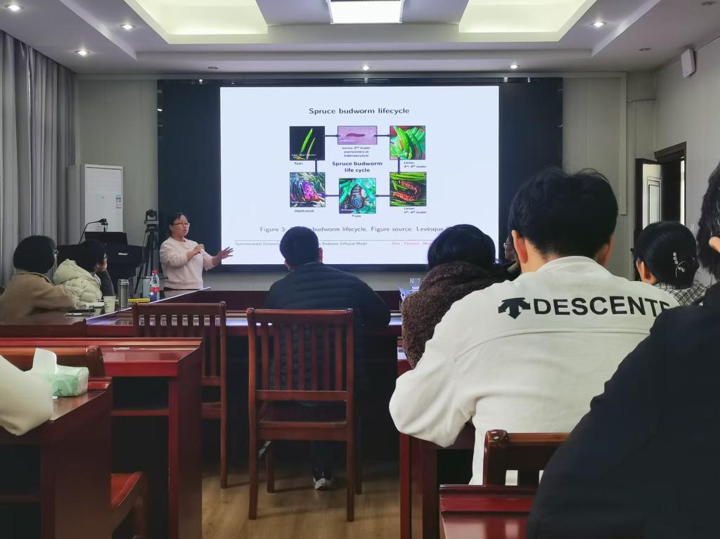 11月10日上午,应pa视讯集团官网邀请,陕西师范大学舒洪英教授在数学楼315会议室为公司师生作了题为“Spatiotemporal dynamics of a structured spruce budworm diffusive model”的学术报告。报告由副经理王霞教授主持,生物数学方向的老师及研究生聆听了此次报告。