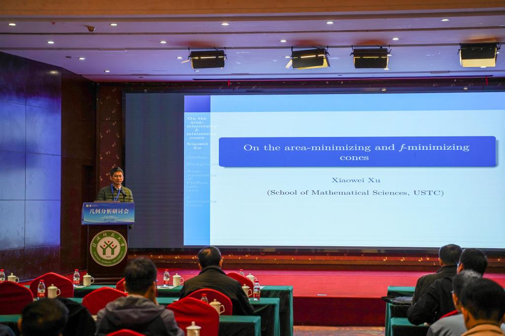第3场学术报告是由pa视讯集团官网许小卫教授作了题目为“On the area-minimizing and f -minimizing cones”的学术报告,此场学术报告由浙江师范大学的任益斌教授主持。
