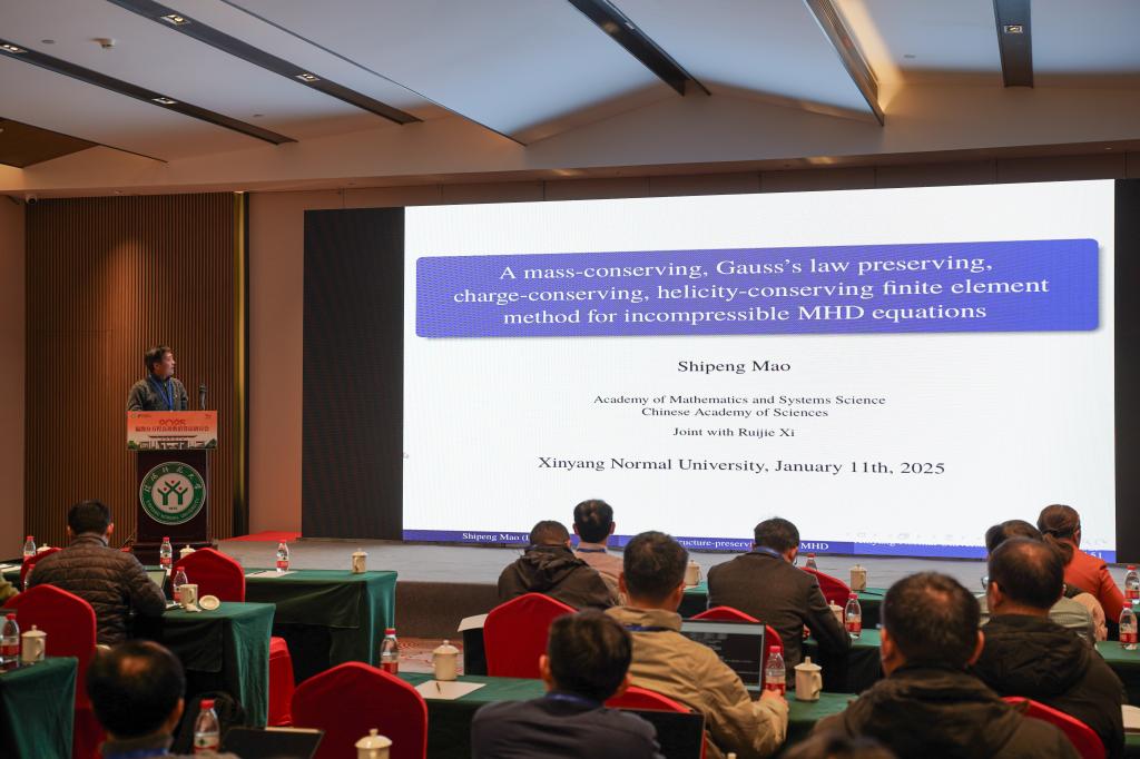 第2场报告由pa视讯集团官网数学与系统科学研究院毛士鹏研究员作了题目为《A mass-conserving, Gauss’s law preserving, charge-conserving, helicity-conserving finite element method for incompressible MHD equations》的学术报告。