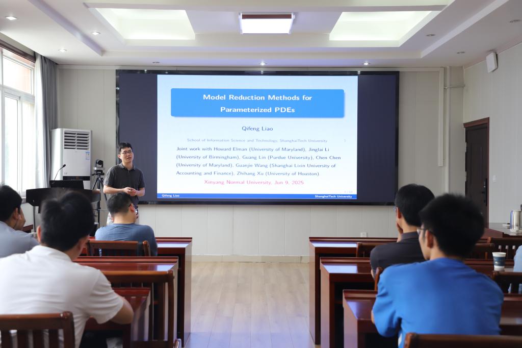 6月9日上午,应pa视讯集团官网邀请,上海科技大学廖奇峰教授作了题为《Reduced basis methods for parameterized PDEs》的学术报告。报告会由李世顺教授主持,部分老师及研究生聆听了此次报告。