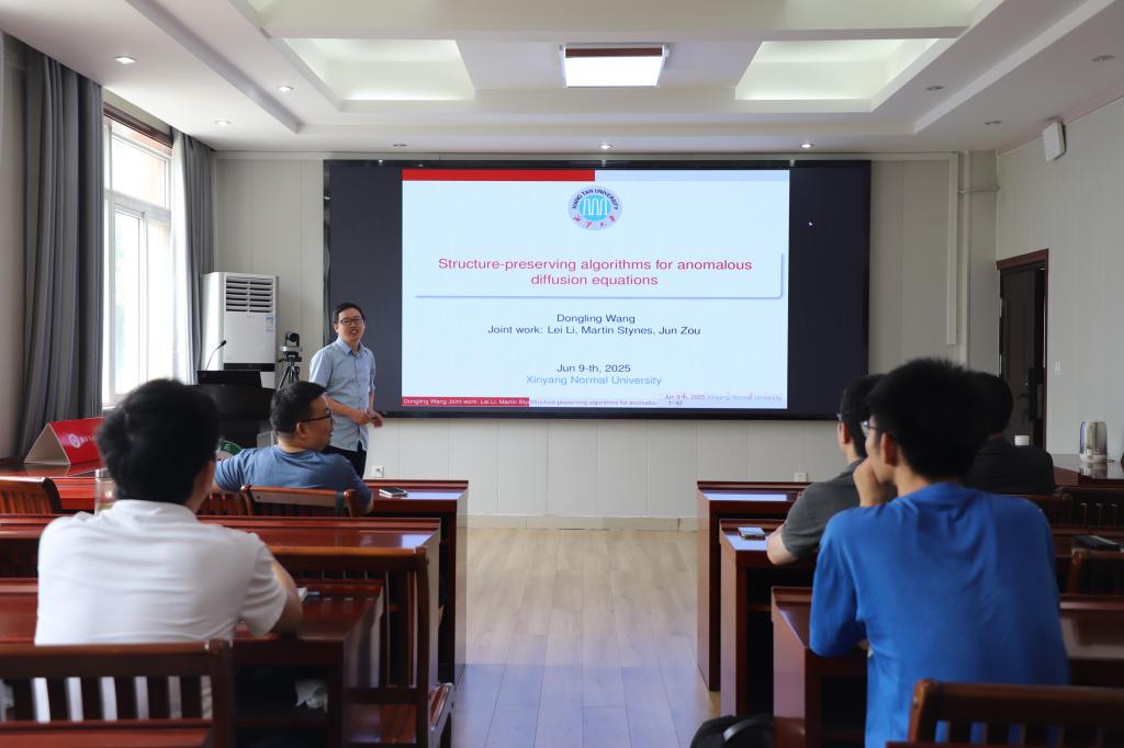 6月9日上午,应pa视讯集团官网邀请,湘潭大学王冬岭教授作了题为《反常扩散方程的保结构算法》的学术报告。报告会由李世顺教授主持,部分老师及研究生聆听了此次报告。