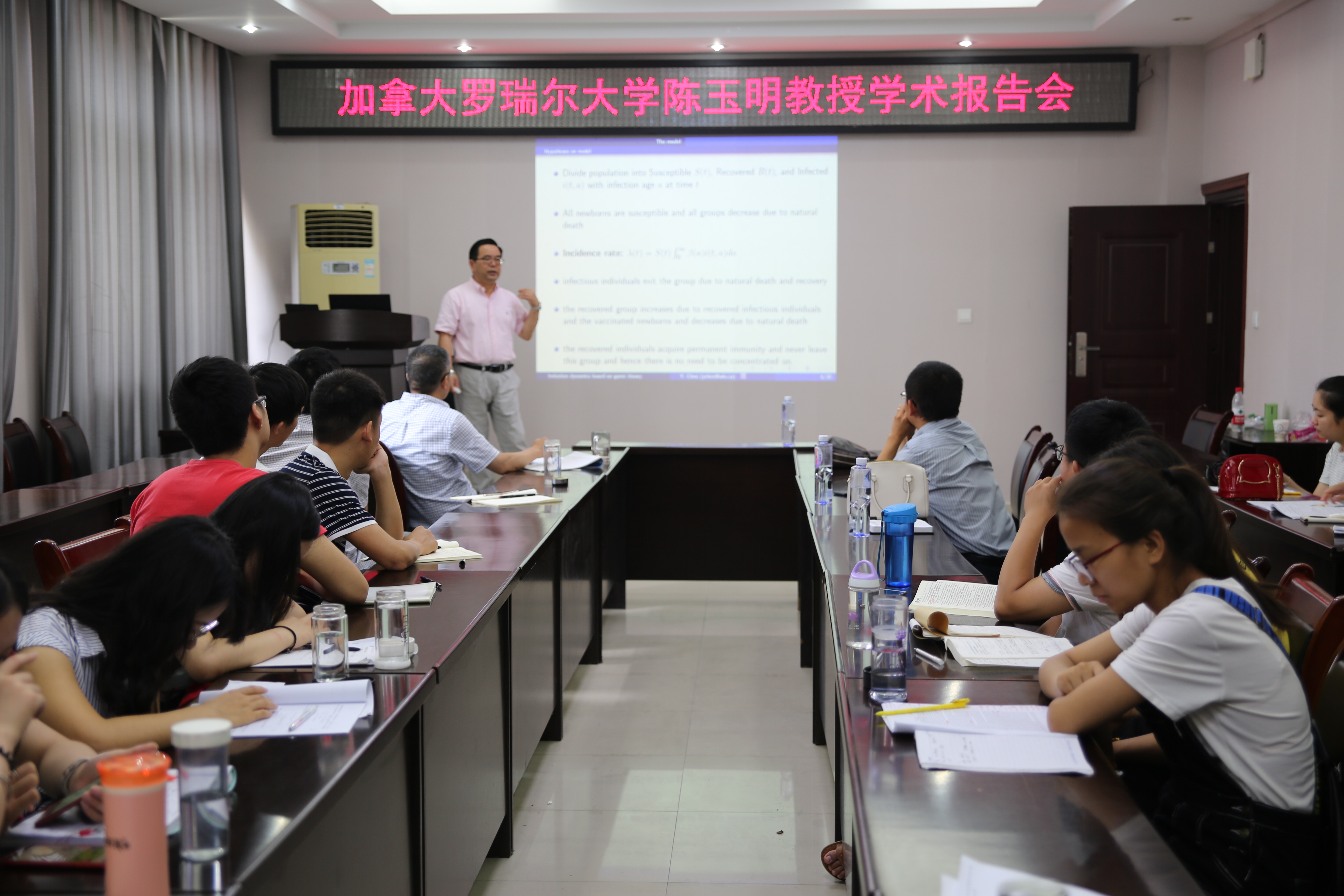 6月21日,应pa视讯集团官网邀请,加拿大罗瑞尔大学陈玉明教授在pa视讯集团官网学术报告厅分别作了题为“Global analysis of a viral model with both cell-free and cell-to-cell infection modes”和“Imitation dynamics of vaccine decision-making behaviors based on the game theory”的学术报告。报告会由pa视讯集团官网副经理蔡礼明教授主持,公司部分教师、研究生聆听了此次报告。