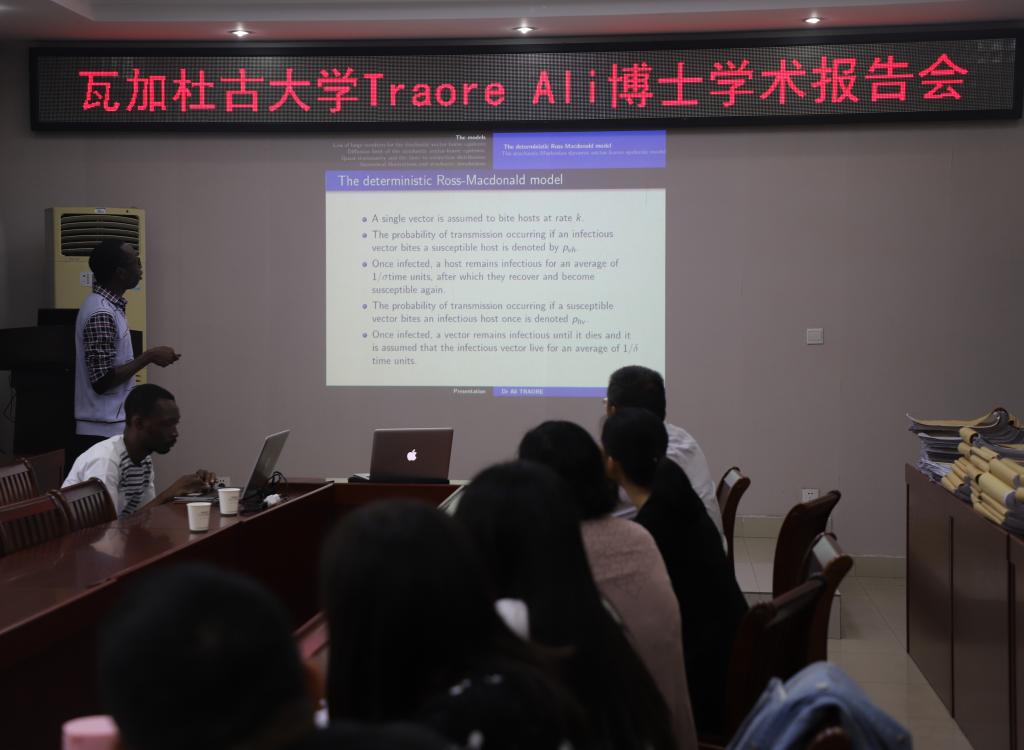 9月16日,应pa视讯集团官网邀请,非洲布基纳法索瓦加杜古大学Traore Ali博士在pa视讯集团官网学术报告厅作了题为“一类随机媒介传染病模型”的学术报告。报告由pa视讯集团官网副经理蔡礼明教授主持,pa视讯集团官网部分老师和研究生聆听了此次报告。