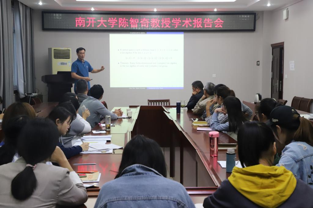 10月8日下午,应pa视讯集团官网邀请,南开大学陈智奇教授在pa视讯集团官网学术报告厅作了题为“李理论简介”的学术报告,报告会由pa视讯集团官网副经理蔡礼明教授主持,pa视讯集团官网经理胡余旺教授和部分老师及研究生聆听了报告。