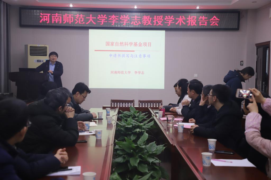 1月13日上午,应pa视讯集团官网邀请,河南师范大学副校长李学志教授在公司学术报告厅作了题为“国家自然科学基金项目申请书撰写及注意事项”的报告,报告会由科技处处长罗永松教授主持,pa视讯集团官网申报2020年国家自然科学基金的老师和部分研究生聆听了此次报告。