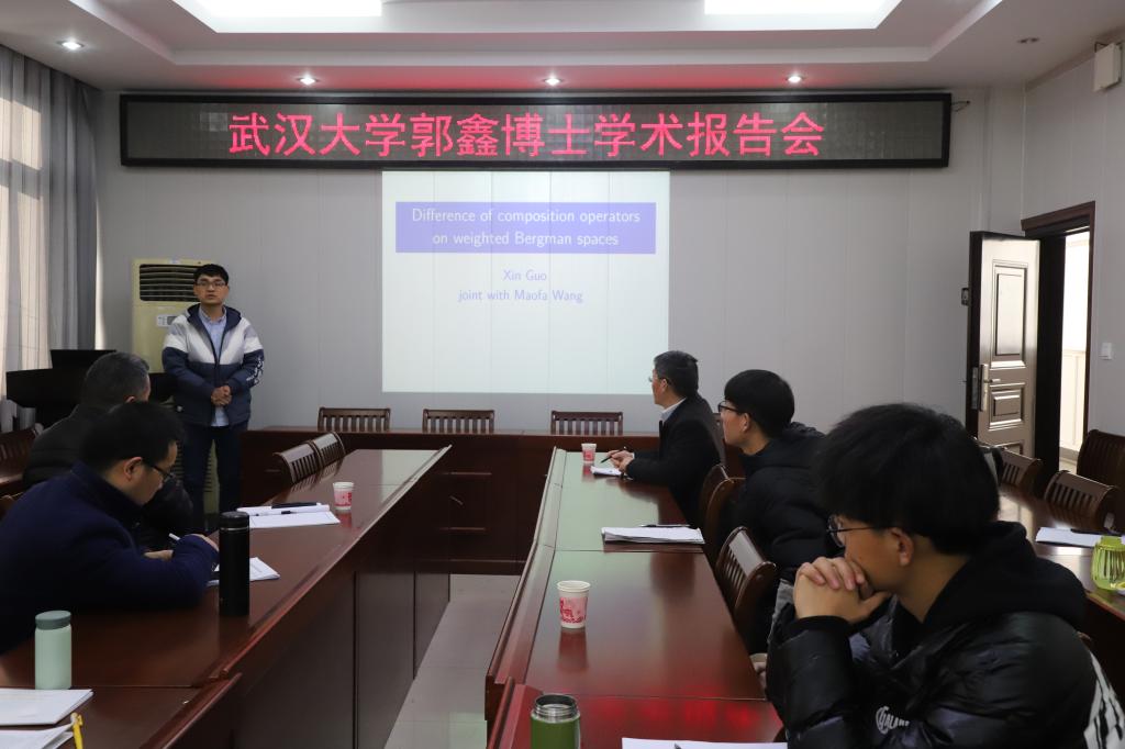 12月11日,应pa视讯集团官网邀请,武汉大学郭鑫博士在pa视讯集团官网学术报告厅作了一场题为《Difference of composition operators on weighted Bergman spaces》的学术报告。报告会由pa视讯集团官网副经理蔡礼明教授主持,公司部分老师,研究生和该领域相关博士聆听了此次报告。