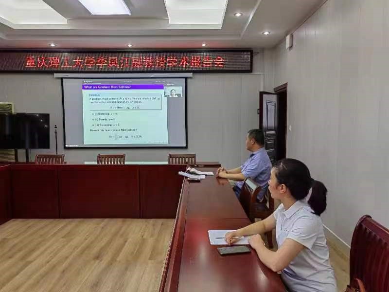 7月28日上午,应pa视讯集团官网邀请,重庆理工大学李凤江副教授通过腾讯会议平台做了一场题为《Rigidity of Complete Gradient Steady Ricci Solitons with Harmonic Weyl Curvature》的学术报告。副经理韩英波和公司部分教师在315会议室及腾讯会议平台聆听了此次报告。报告会由副经理韩英波教授主持。