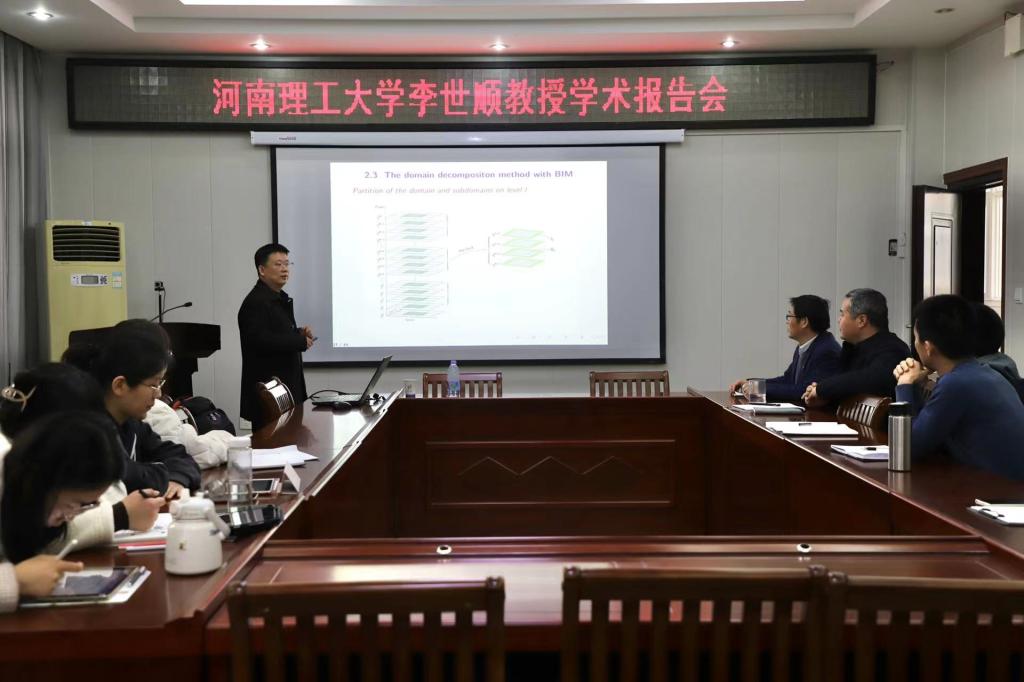 2023年3月2日下午,应pa视讯集团官网邀请,河南理工大学李世顺副教授,在公司学术报告厅作了题为“Time-parallel time-integration schemes for ordinary and partial differential equations”的报告。报告会由pa视讯集团官网副经理韩英波教授主持,公司经理蔡礼明教授、计算数学团队教师和部分研究生聆听了这次报告。