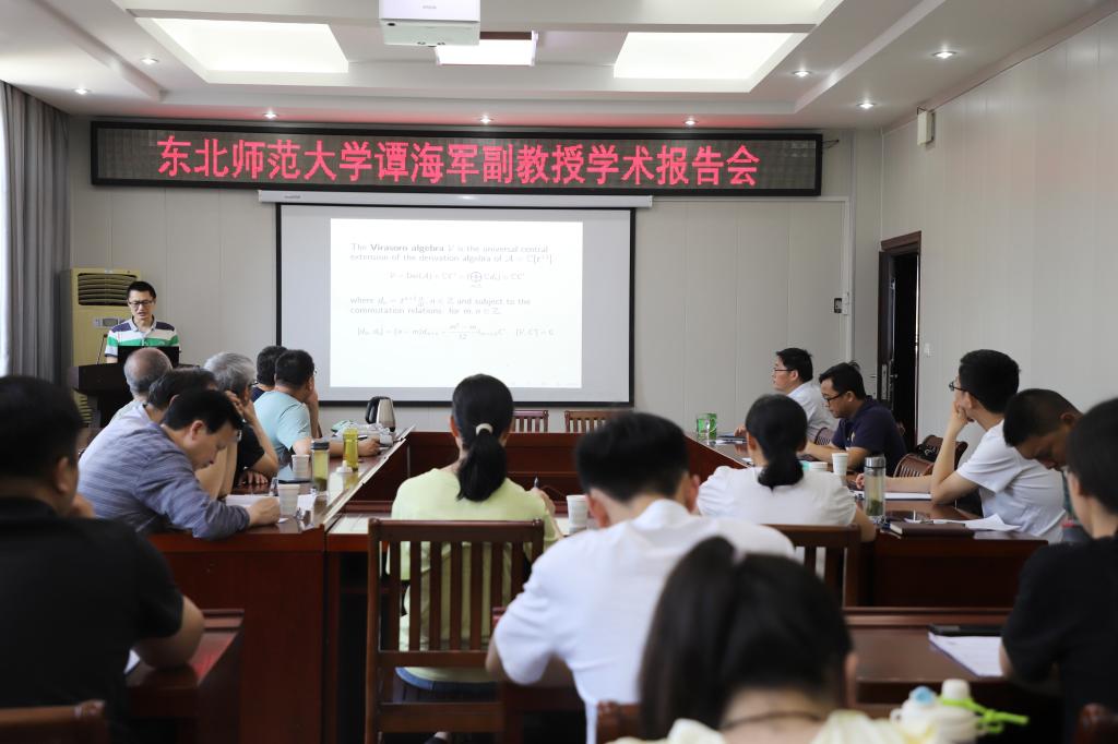 6月10日上午,应pa视讯集团官网邀请,东北师范大学谭海军副教授在公司报告厅315作了题为“A class of simple affine-Virasoro algebra modules”的报告。报告会由pa视讯集团官网经理蔡礼明教授主持,部分教师和研究生参加了此次报告会。