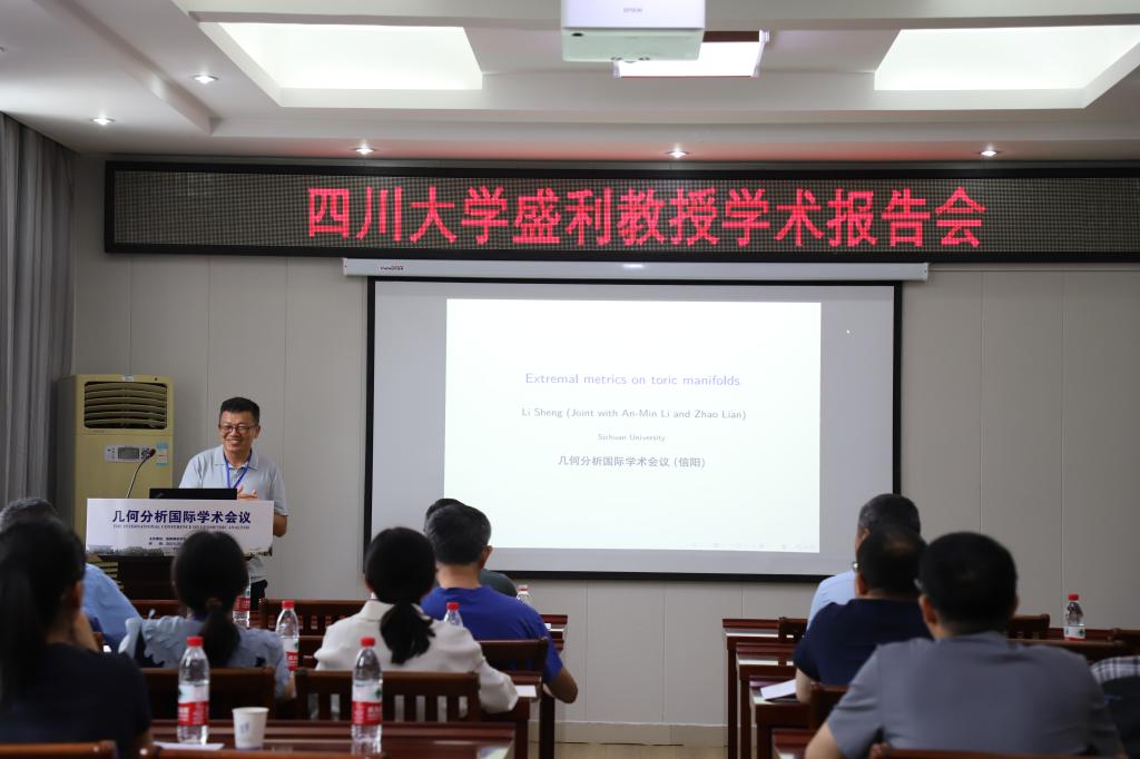 2场报告由四川大学盛利教授报告,题目为《Extremal Metrics on Toric Manifolds》。在报告中,盛利教授给出了环流形和齐次环丛上的的Yau-Tian-Donaldson猜想的证明。