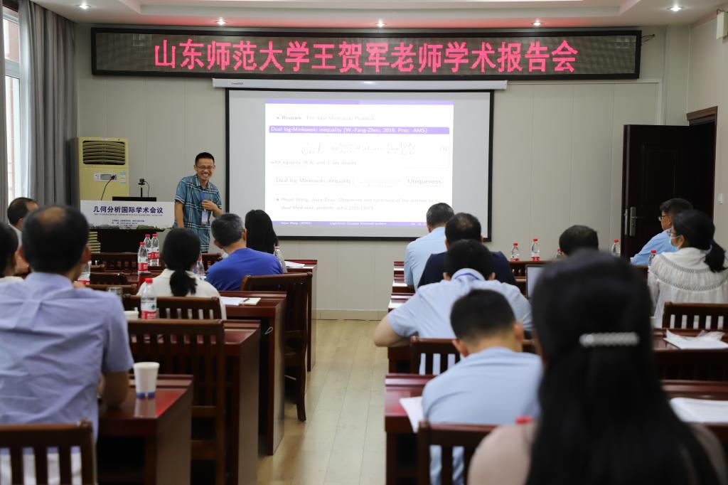 3场报告由山东师范大学王贺军博士报告,题目为《logarithmic Guassian Minkowski problem》。在报告中,王贺军博士讨论了对数 Gaussian Minkowski 问题的解的存在唯一性。