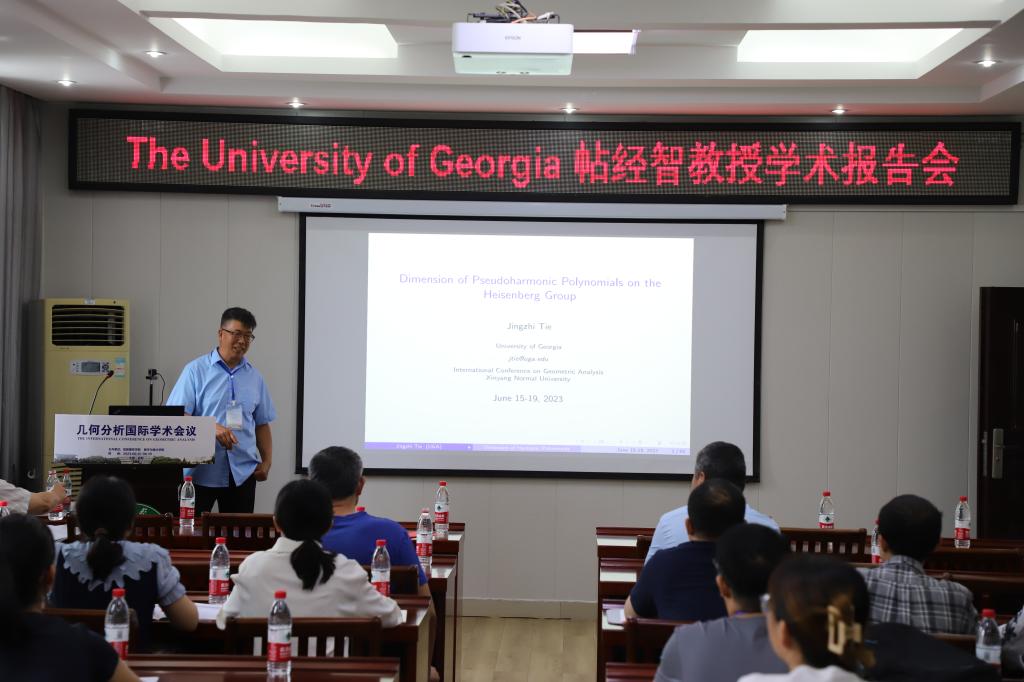 1场报告由美国Georgia大学帖经智教授报告,题目为《The exact formula of dimension of harmonic polynomails on the Heisenberg group》。在报告中,帖经智教授讨论了Heisenberg群上调和多项式的线性空间维数的精确计算公式。