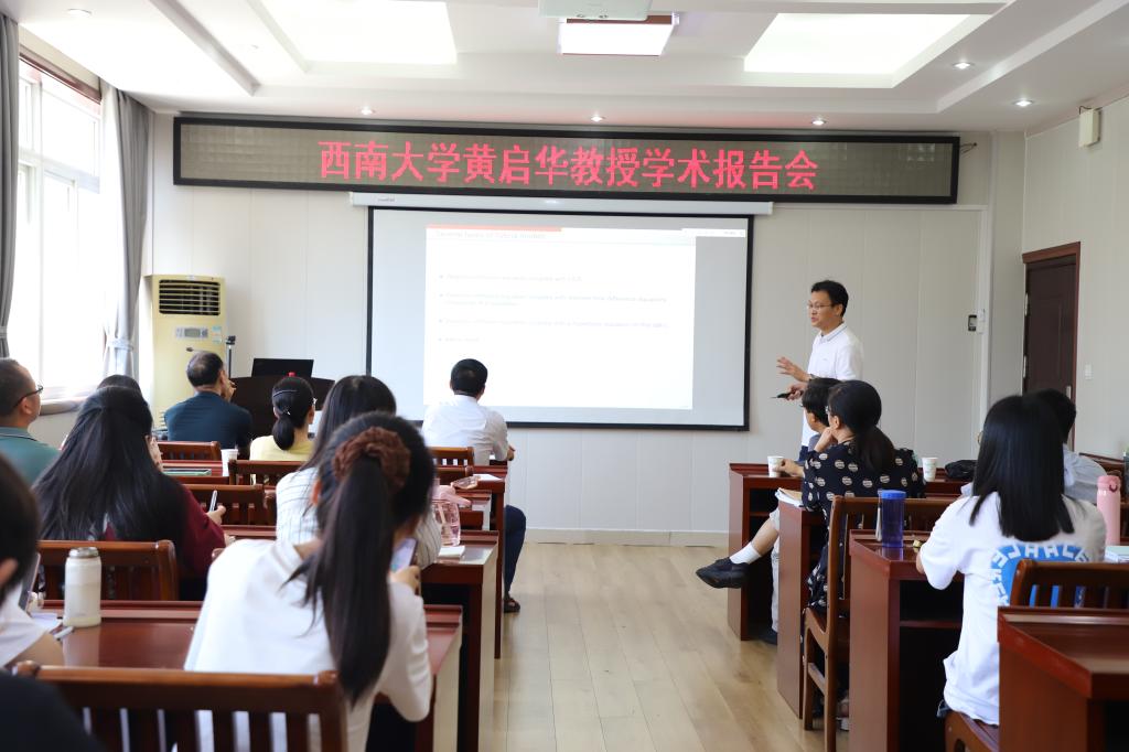 8月2日上午, 西南大学黄启华教授在公司报告厅315作了题为“A hybrid parabolic and hyperbolic equation model for a population with separate dispersal and stationary stages: well-posedness and population persistence”的学术报告,报告会由pa视讯集团官网经理蔡礼明教授主持,公司生物数学方向教师和研究生参加了此次报告会。