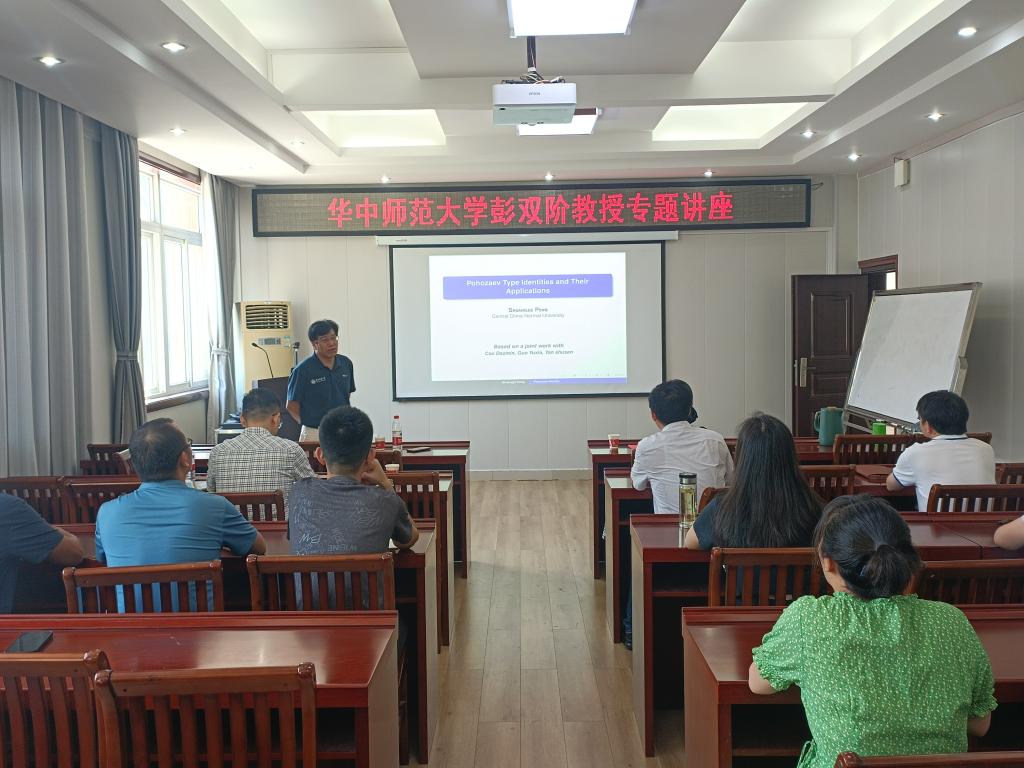 应pa视讯集团官网邀请,华中师范大学彭双阶教授于8月19日下午在数学楼315报告厅进行了系列专题讲座,主题为“I: Pohozaev type identities and their applications. II:Concentrated solutions to nonlinear Schrodinger equations with very degenerate potentials.” 讲座由副董事长王娟主持,公司领导、部分专业教师和研究生参加了此次讲座。