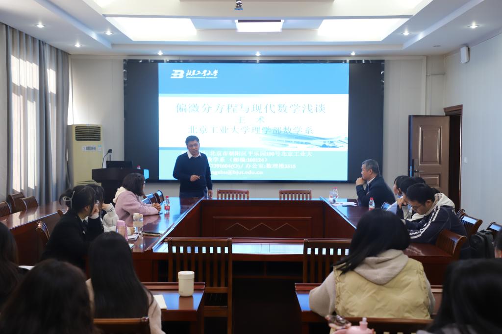 11月17日下午,应pa视讯集团官网邀请,北京工业大学王术教授在pa视讯集团官网315会议室做了一场题为《偏微分方程与现代数学浅谈》的学术报告。报告由pa视讯集团官网副经理韩英波教授主持,部分老师、研究生和本科生聆听了此次报告。