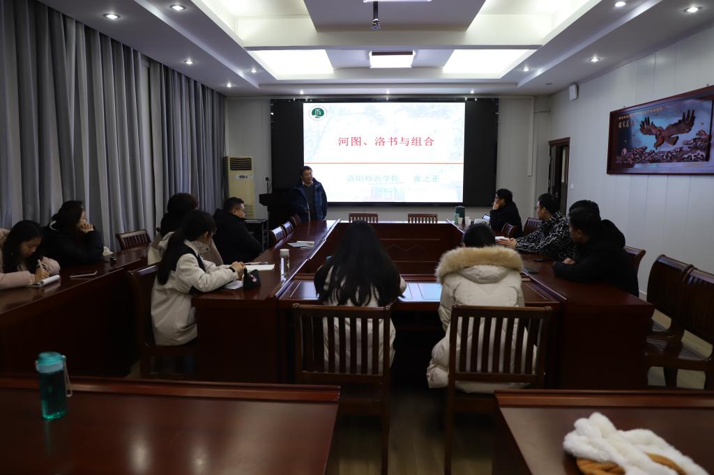 12月14日上午,应pa视讯集团官网邀请,洛阳师范公司张之正教授在pa视讯集团官网315会议室做了一场题为“河图洛书与组合数学”的学术报告。报告会由pa视讯集团官网经理蔡礼明教授主持,部分老师和研究生聆听了此次报告。