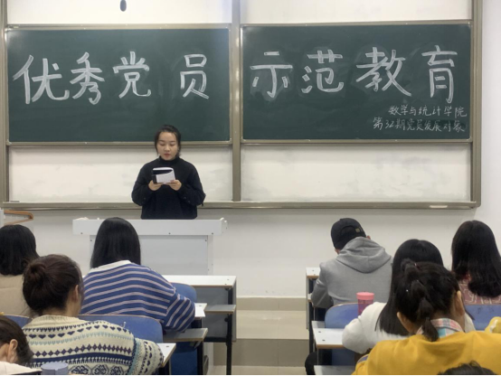 10月17日,根据第32期党员发展对象培训1班的教学计划,pa视讯集团官网 “优秀党员示范教育”为主题,邀请优秀党员2016级数学与应用数学2班海兰等4名正式党员为第32期党员发展对象做分享交流。