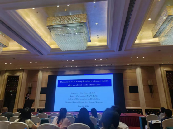 6月24日至28日,第七届生物数学国际会议(The 7thInternational Conference on Mathematical Biology)在西安建国饭店召开。 本届会议 由西安交通大学承办,会议旨在探讨数学与生态学、生命科学、公共卫生等交叉研究领域亟待解决的热点问题,为生物数学领域的研究人员搭建交流最新的研究成果重要平台。会议来自英国利兹大学、美国迈阿密大学和路易斯维尔等大学、加拿大约克大学和纽芬兰纪念大学、法国弗朗什孔泰大学、匈牙利赛格德大学、日本京都大学、韩国数学科学研究所、清华大学、复旦大学、上海交通大学、中科院、中科大、香港理工大学等100多个单位的500多名代表参会。公司生物数学科研团队多人受邀参会并主持学术报告,主旨演讲, 特别地,2022级硕士研究生朱佳月,郑梓涵受邀参加,分别做了时间为30分钟,题为“Dynamics of a mosquito-born disease model with nonlocal state structures”和 “ Dynamic behavior analysis to a generalized chemotaxis-consumption system” 的学术报告,精彩演讲,受到与会专家学者的好评。