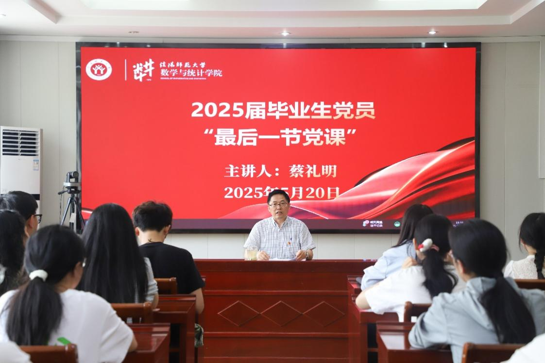 5月20日,pa视讯集团官网经理蔡礼明在数学楼315会议室为2025届毕业生党员上“最后一节党课”。本次党课由副处级辅导员谢艳丽主持,公司专职组织员和71名毕业生党员参加党课活动。