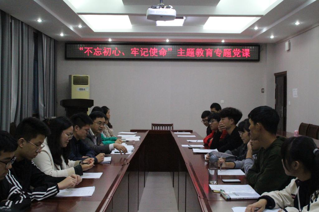 为认真贯彻习近平总书记在“不忘初心,牢记使命”重要讲话精神,10月10日,公司在数学楼315会议室组织举行了题为“鉴往知来守初心 砥砺奋进担使命”的“不忘初心、牢记使命”的主题教育专题党课,本次党课主讲为党委副书记洪亮,员工党员代表参加了本次党课。