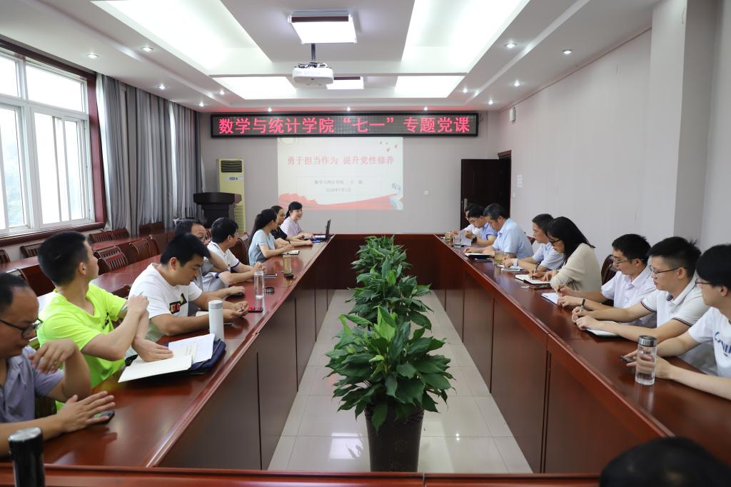 为庆祝中国共产党成立九十九周年,深入学习贯彻习近平新时代中国特色社会主义思想,不断巩固“不忘初心、牢记使命”主题教育成果,7月1日下午,数学与统计公司党委书记王娟为公司对党员干部上了一堂名为“勇于担当作为,提升党性修养”的党课。