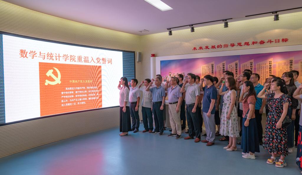 7月7日上午,数学与统计公司党委共50多名党员齐聚校史馆,以过集体“政治生日”的形式,举行“重温入党誓词,坚定理想信念”主题党日活动,庆祝党的99岁生日。