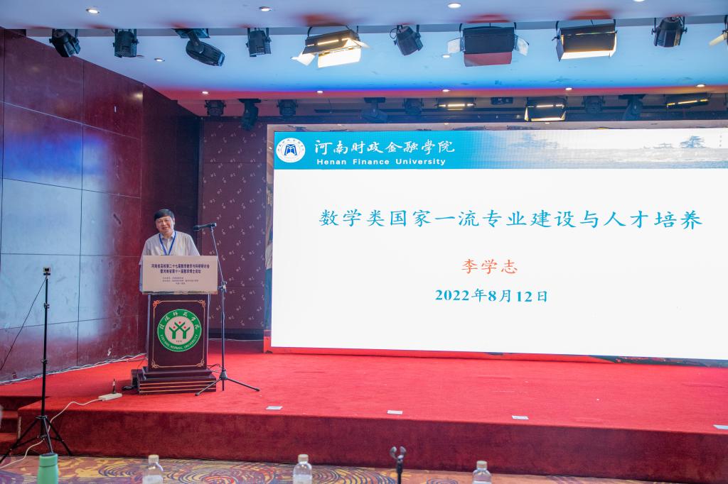 第二阶段的会议由河南大学冯淑霞教授主持。河南财政金融公司李学志教授做了题目为《数学类国家一流专业建设与人才培养》的报告。他主要介绍了数学类国家一流专业申报评审情况、数学学科拔尖人才培养情况、数据计算及应用新专业建设情况、应用数学丛书、全国高校密码数学挑战赛开展情况等。