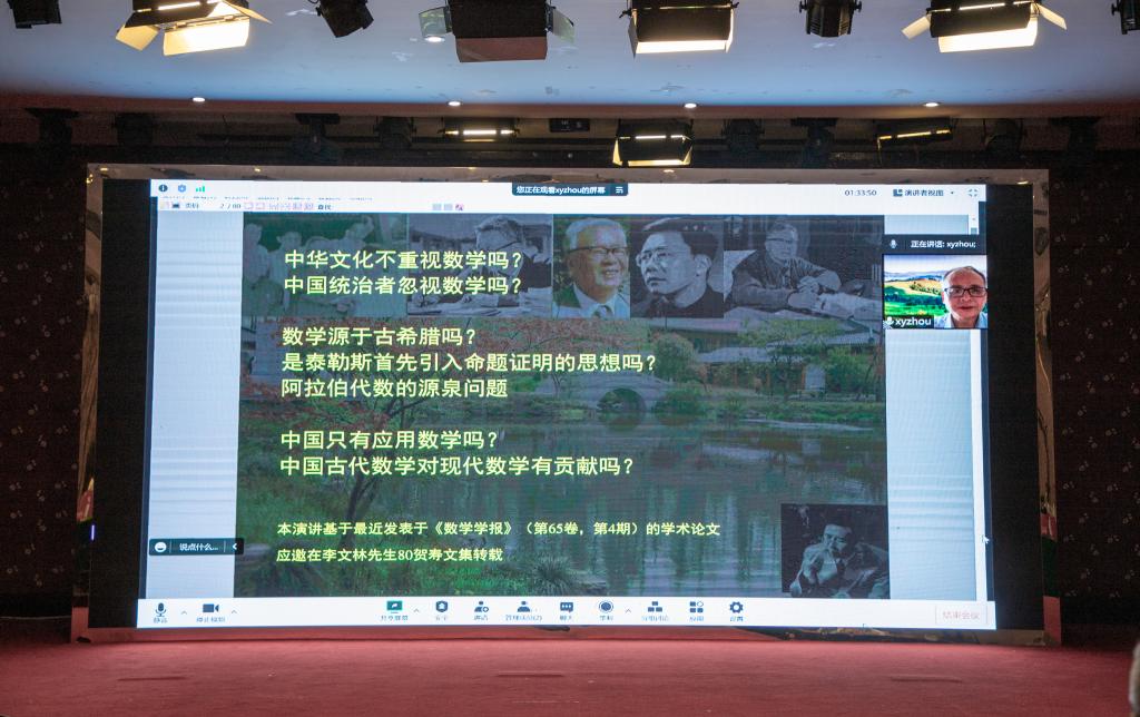第一阶段的会议由河南大学卢克平教授主持。pa视讯集团官网院士周向宇教授做了题目为《中国古代数学的贡献》的报告,他带领大家领略了中国古代数学的风采,阐释了国学中核心人文思想与数学精神的交融,指出了我国古代数学对国学的影响、对华夏文明的贡献和对世界数学的贡献。