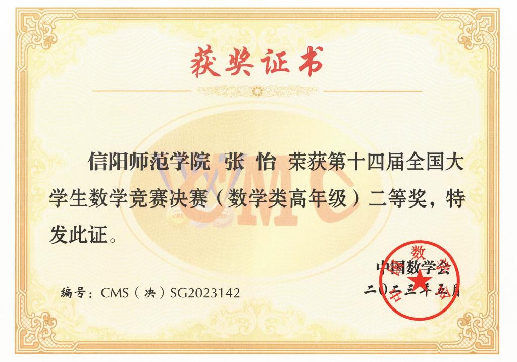 2023年5月26日至28日,第十四届全国老员工数学竞赛决赛在广东工业大学举行。pa视讯集团官网2020级数学实验班员工张怡取得公司员工在该竞赛中的历史最好成绩,荣获数学类高年级组全国二等奖。另悉,河南赛区在本次决赛中共获数学类一等奖1项、二等奖3项、三等奖17项。 此外,在2023年3月举行的河南赛区比赛中,公司经pa视讯集团官网指导并报名参赛的员工获省级一等奖15项、二等奖20项、三等奖26项。