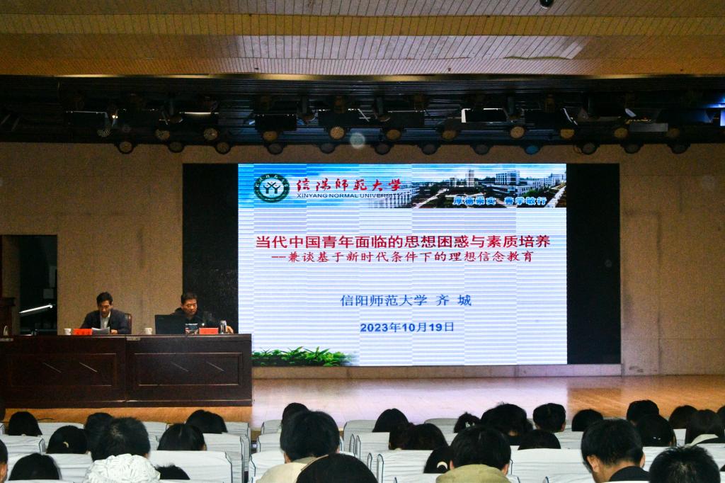 10月19日晚,前PA视讯官方网站副经理、研究员齐城应邀在理科楼报告厅为公司23级本科新生作了题为“当代中国青年面临的思想困惑与素质培养——兼谈基于新时代条件下的理想信念教育”的新生入学教育报告。讲座由离退休工作管理处副处长李事瑾主持。