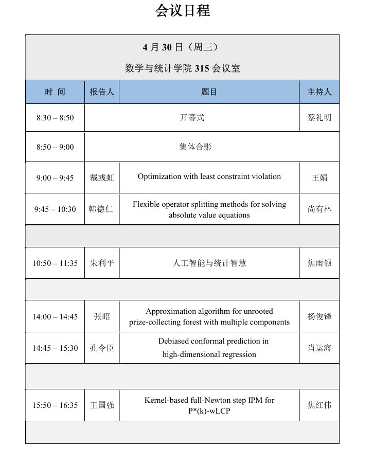 庆建校50周年之南湖讲坛: 统计与优化研讨会预告