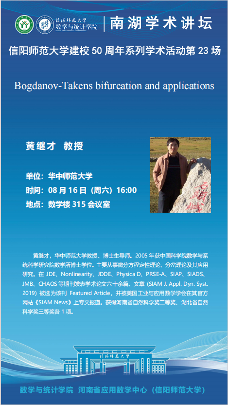 庆建校50周年之南湖讲坛:华中师范大学黄继才教授——Bogdanov-Takens bifurcation and applications